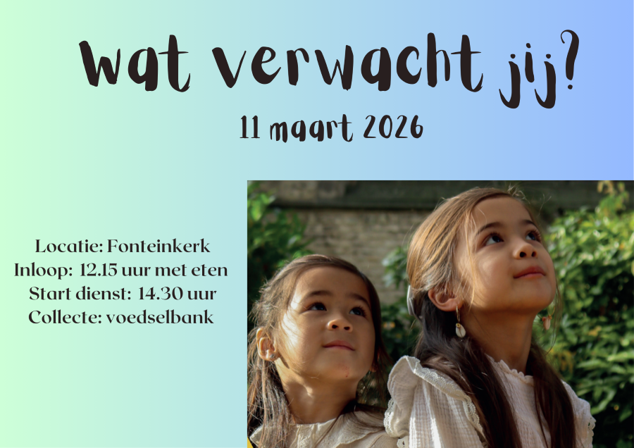 •  11-3 om 19.30u.: Biddag voor Gewas en Arbeid, samen in de Fonteinkerk.