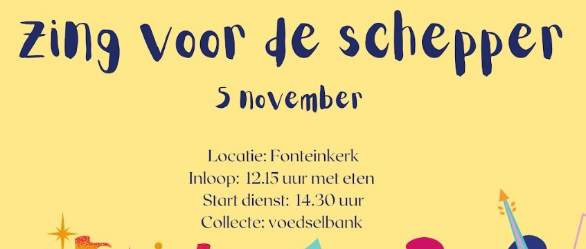 Op woensdag 5 november is het weer zover, de Dankdag kindermiddag in de Fonteinkerk. Neem vooral je vriendjes en vriendinnetjes mee!