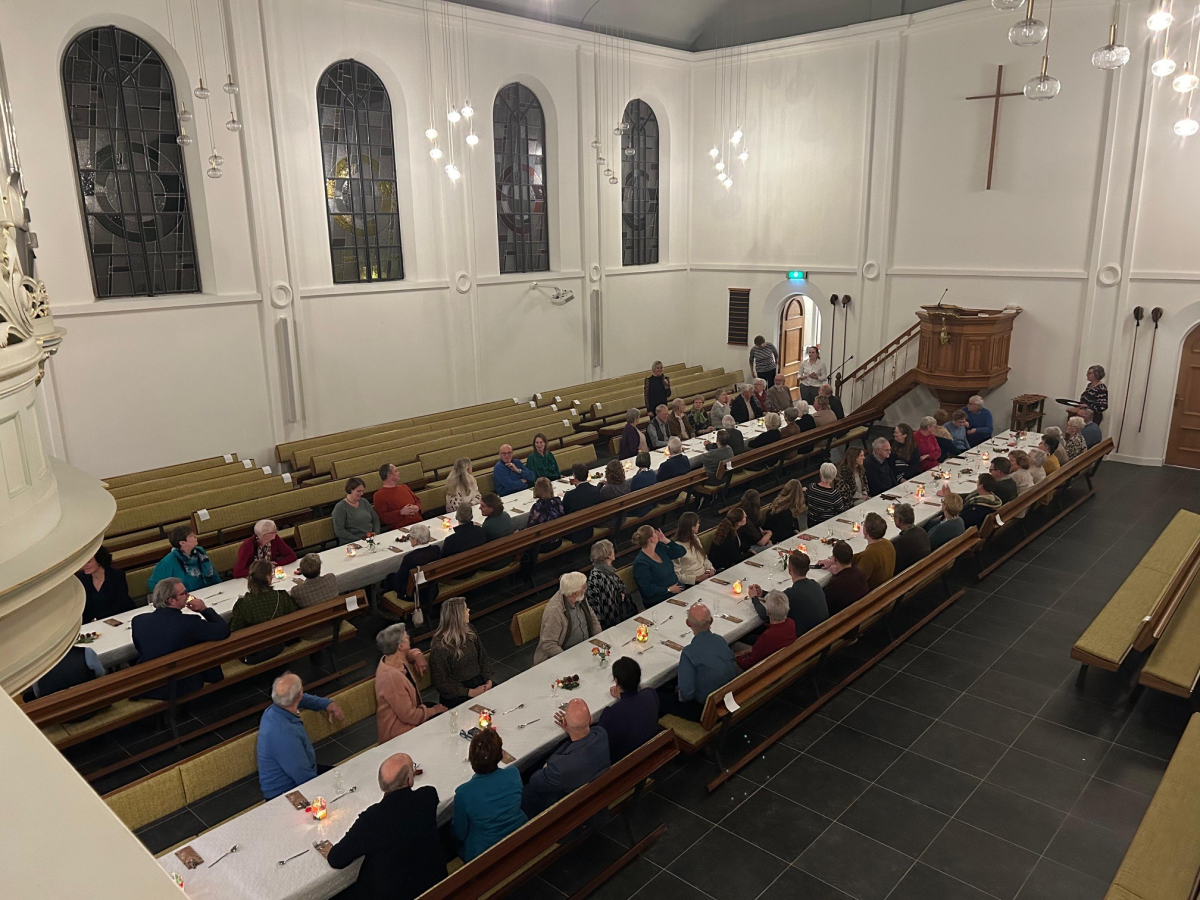 Safe the date! Na een daverend succes vorig jaar is er een nieuwe datum voor het kerkdiner: vrijdag 14 november 2025 vanaf 18:30 uur. Zet 'm alvast in uw agenda, zeg afspraken af of boek ze om. Nadere informatie over inschrijven en kosten volgt nog.