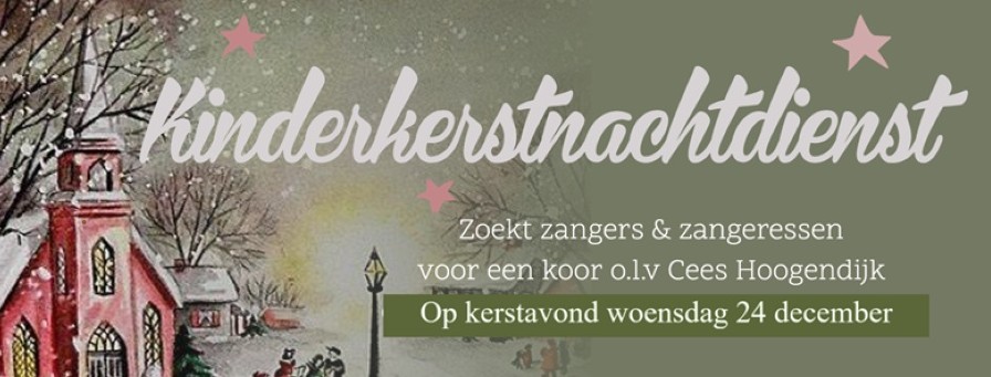 Ook dit jaar willen we weer met kinderen, ouderen en volwassenen een koortje vormen voor de Kinderkerstnachtdienst. Doe ook mee en geef je/u op bij John Clever. Bel, app of mail: 06 53621478/ johnclever1973@gmail.com