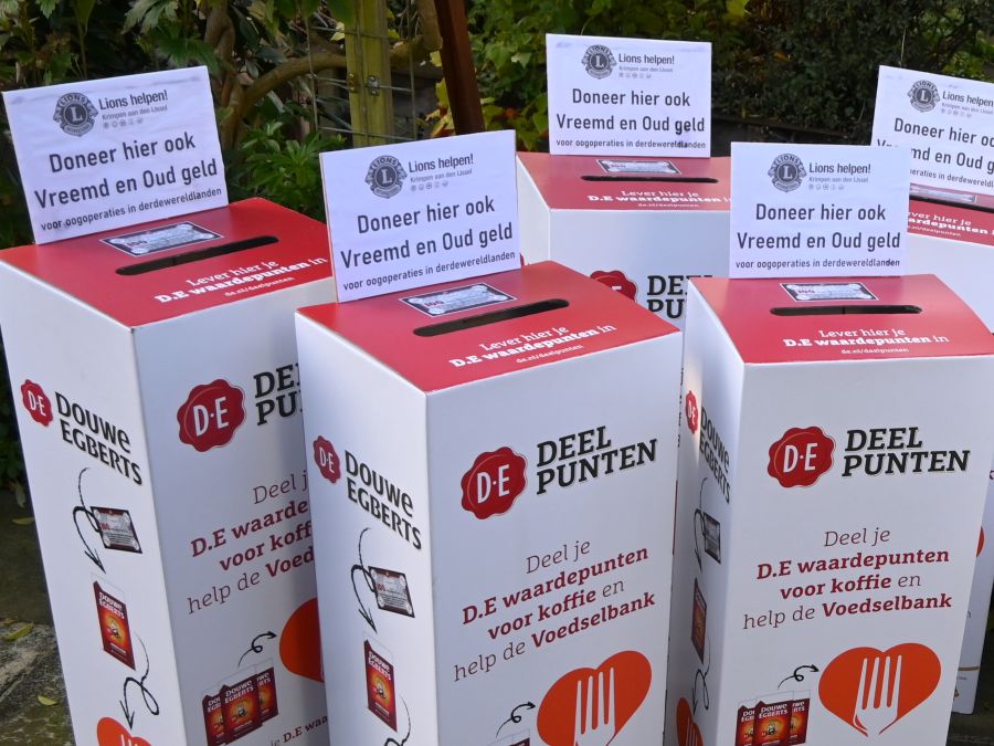 In december vindt u in de hal van onze kerk weer een inzameldoos van de Lionsclub Krimpen aan den IJssel, waarin u Douwe Egberts-waardepunten maar ook vreemd en oud geld kunt deponeren.